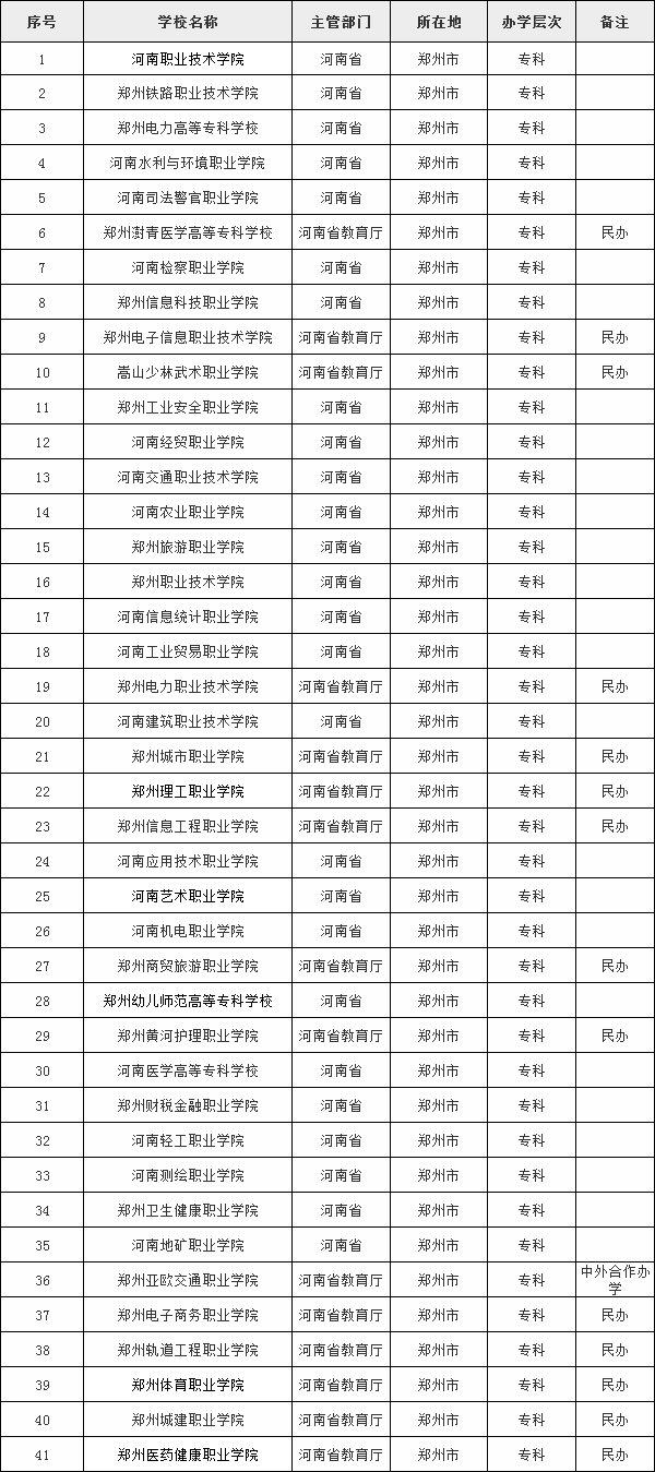 1. "郑州航空航天职业学院" 2. "河南职业技术学院" 3. "河南工业职业技术学院" 4. "河南水利与环境职业学院" 5. "河南交通职业技术学院" 6. "河南农业职业学院" 7. "河南经贸职业学院" 8. "河南信息工程职业学院" 9.举报 -