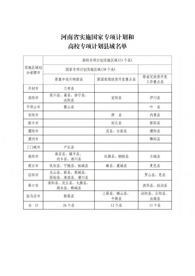 国家专项计划的实施区域为国家划定的38个县(包括26个原集中连片特殊困难县和12个原国家级扶贫开发重点县)。考生须同时具备下列条件:本人具有实施区域当地连续3年以上(至今)户籍,其父亲或母亲或法定监护人具有当地户籍;本人具有户籍所在县高中连续3年学籍并实际就读;已在当地参加2025年统一高考报名且通过报名资格审核。