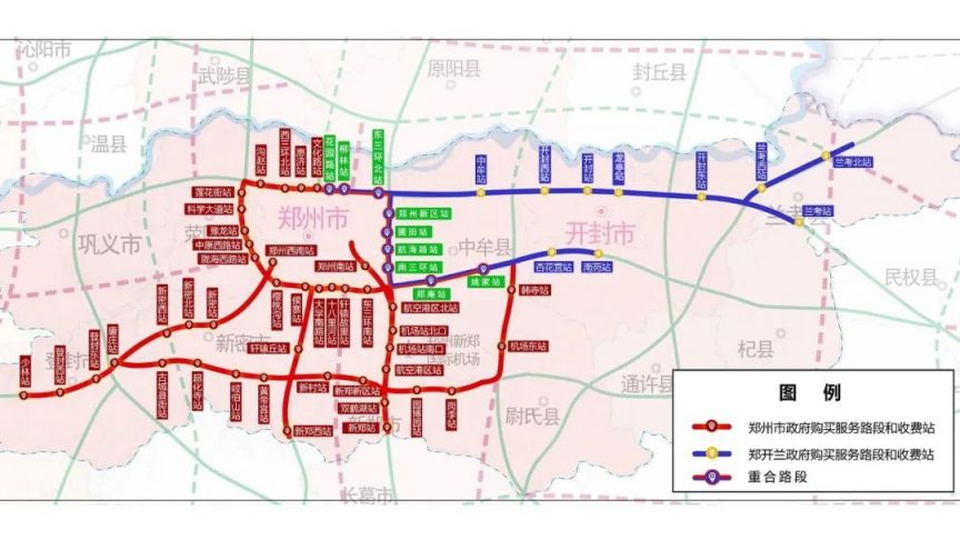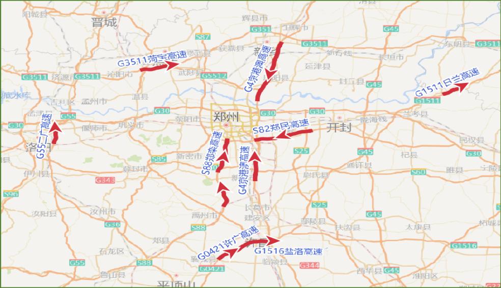 京港澳高速:郑州新区站、圃田站、航海路站、南三环站;