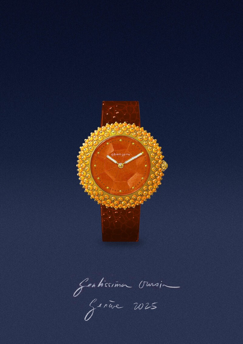 Gérald Genta年度新品Gentissima Oursin Fire Opal,是Gérald Genta较显为人知的Oursin(指称海胆)系列。该系列源于1994年Genta一家正在科西嘉岛度假,观察海边生物所获得的灵感。海胆带刺外观转化为圆珠装饰錶壳。新品錶壳为3N黄金装饰137颗火蛋白石,橘色红玉髓錶盘。搭载Cal. GG-005,为同集团Zenith Elite机芯改制。 BVLGARI在再为Serpenti系列添置全新机芯Lady Solotempo BVS100,直径19mm、厚度3.90mm,仅5克重,展现宝格丽耕耘超薄与微型机芯的能力。 Tiffany & Co. 钟錶週首秀Art Nouveau时计