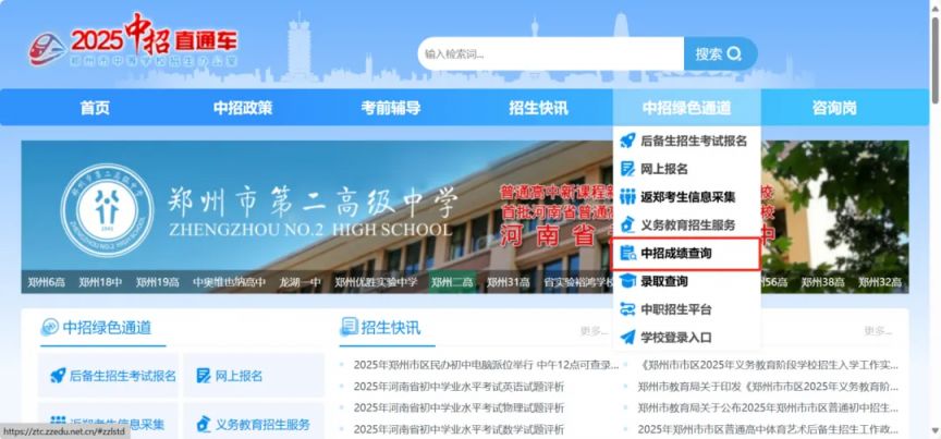 1. 登录“中招直通车”网站(http://ztc.zzedu.net.cn)的中招成绩查询窗口,查询考生考试成绩。
