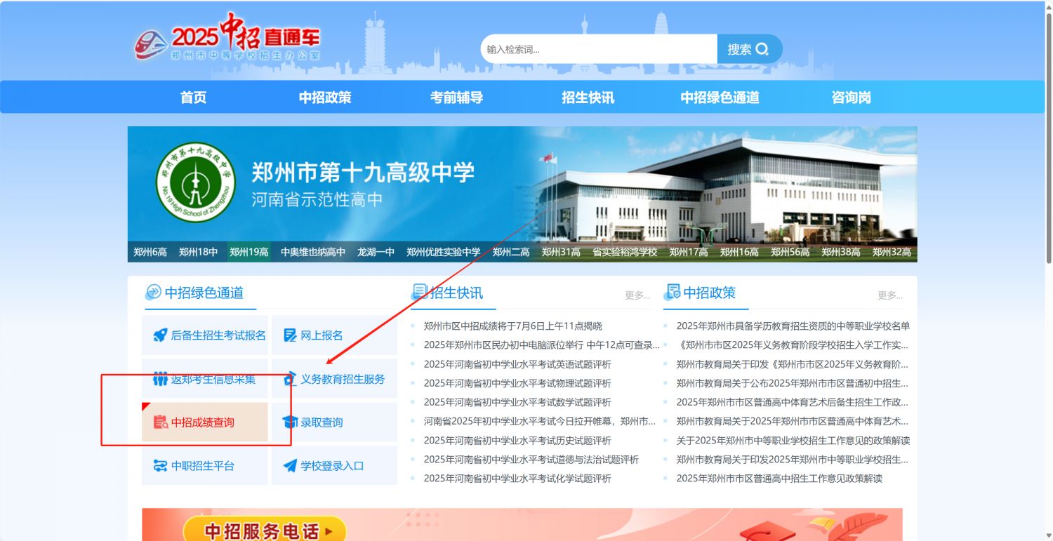 2025中招直通车查询成绩入口(https://ztc.zzedu.net.cn/)